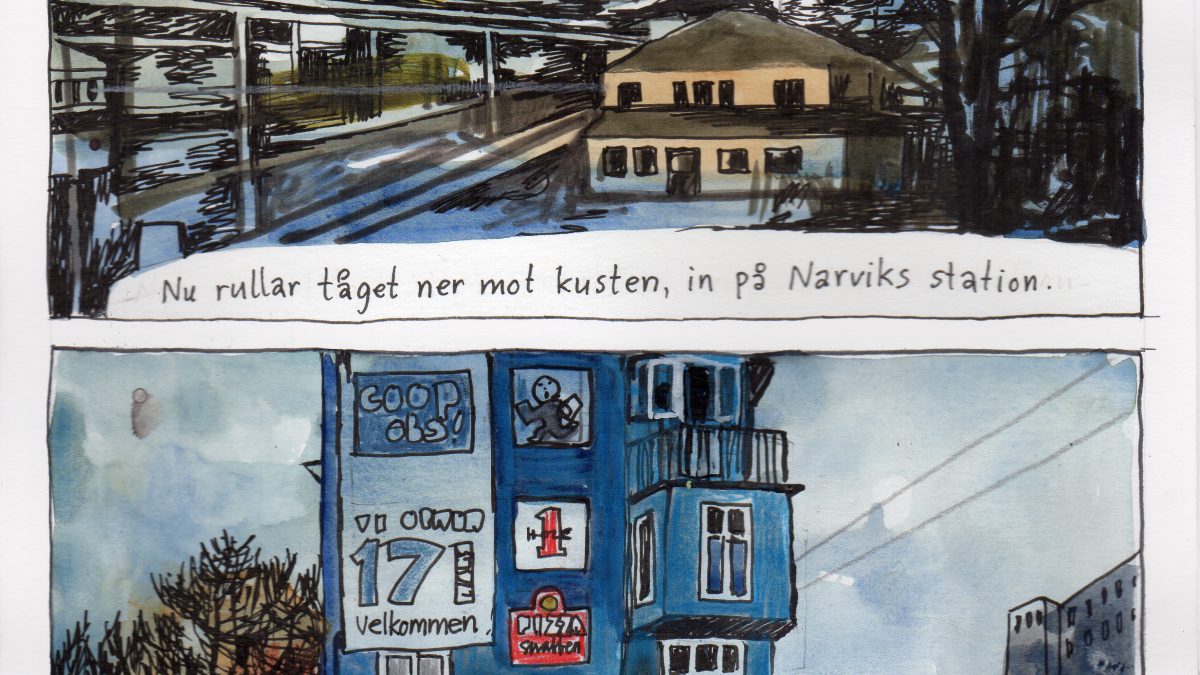 In our works in the exhibition, the landscape reveals additional narrative dimensions, sometimes with hidden details. The empty spaces in the comics also tell the story of the character who is absent, while the spaces depicted with the character complete the story. Landscapes can provide a new narrative layer to comics. In Anneli Furmark’s comics, for example, the northern climate appears as a kind of person whose presence cannot be ignored.