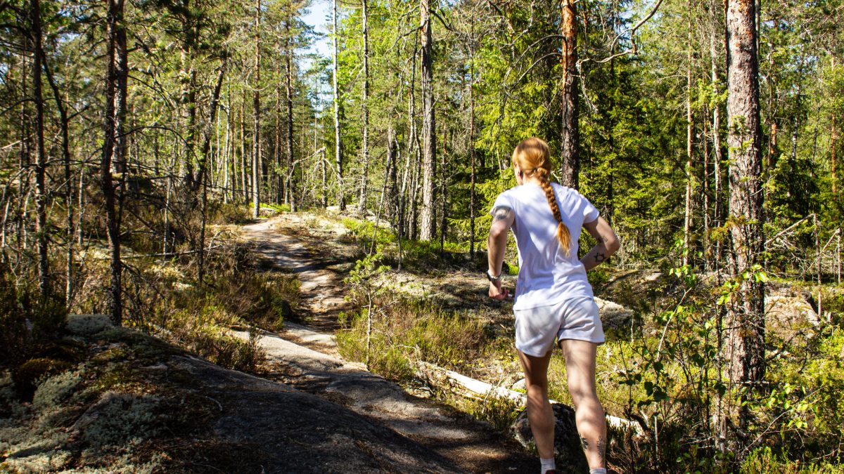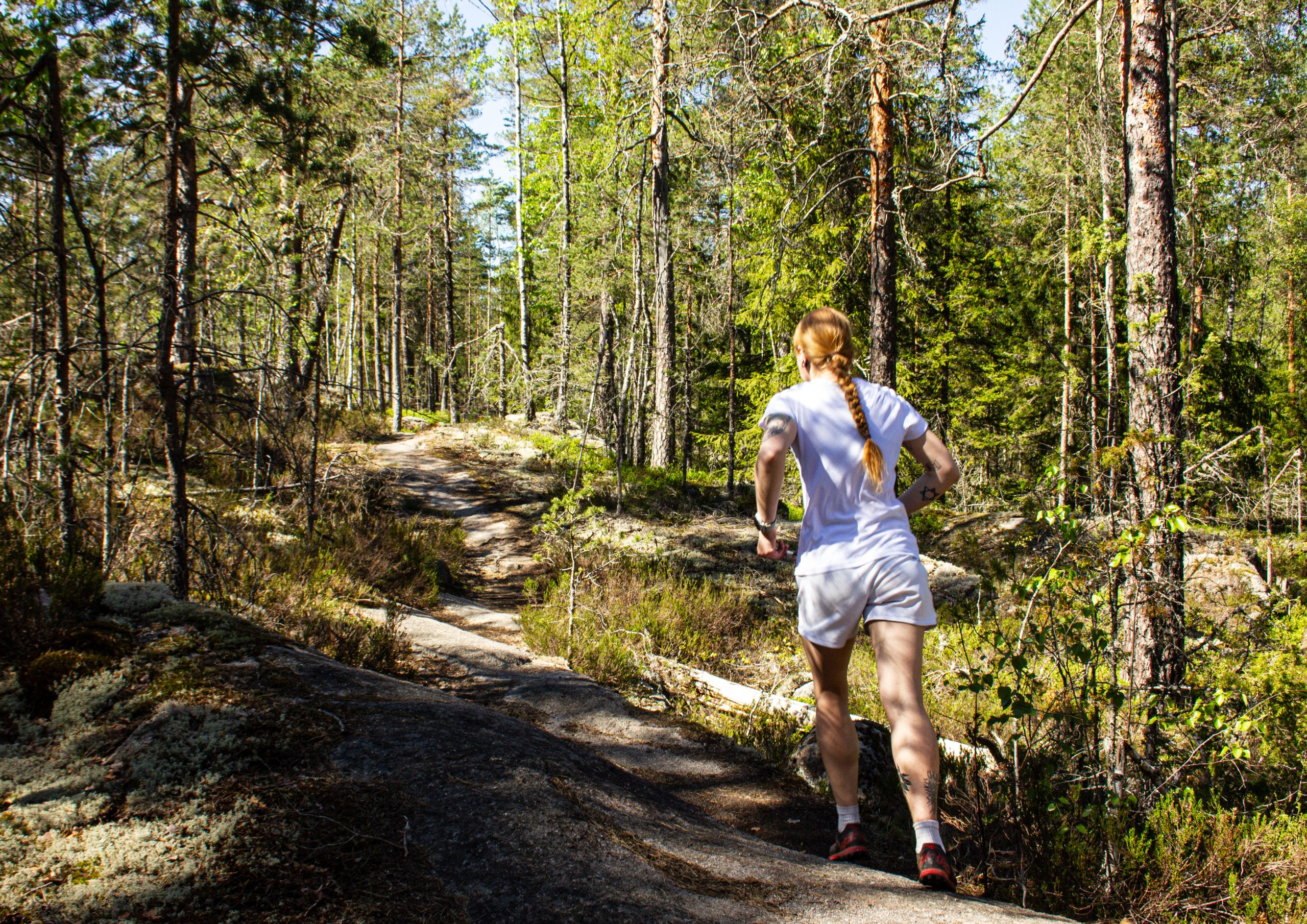 “Teoksemme piirtää esiin juoksun liikkeen ja polun joka on syntynyt useiden toistojen sarjasta osaksi maisemaa. Juoksijan vartaloon juoksemisen tapahtuman aikana syntyviä piirrosviivoja rytmittää äänimatto joka koostuu ajasta jolloin juoksijan keho on ollut kosketuksissa luontoon polun pinnan kautta. Teoksemme toisintaa myös polkujuoksuun liittyvää luontokokemusta rakentaen ympäristöstä kollaasimaisen kokonaisuuden mediataiteen keinoin. “
