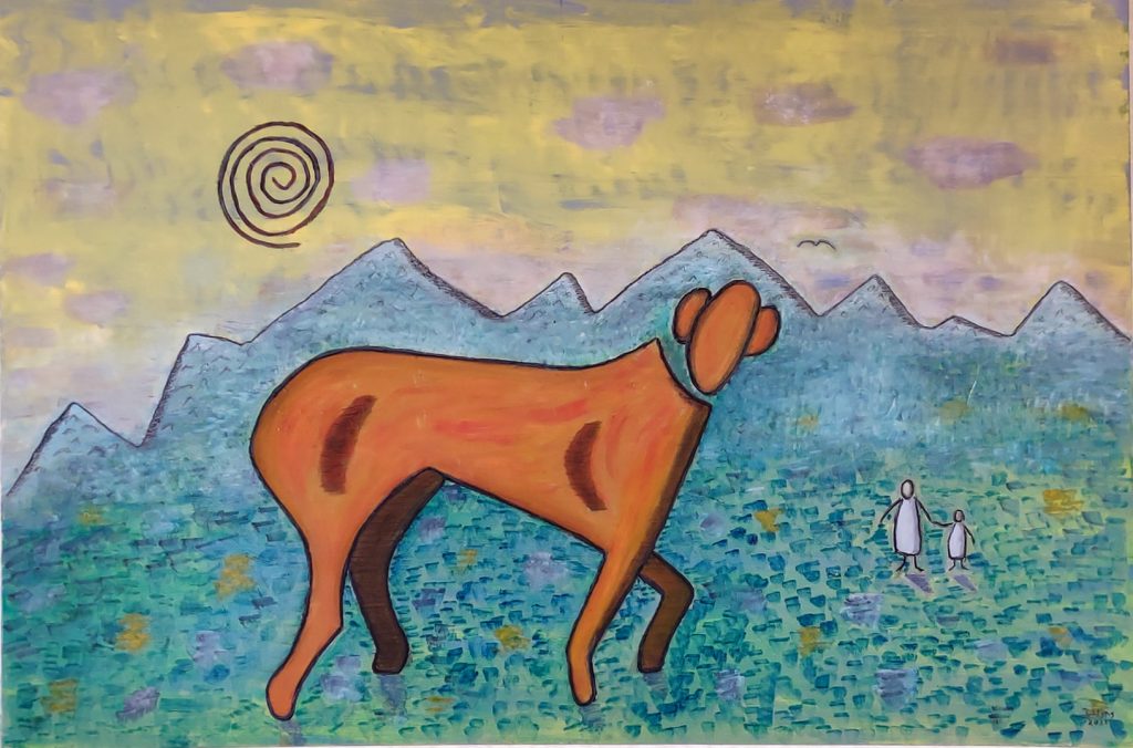 Aloin tuntea suurta tarvetta keskittyä enemmän visuaaliseen ilmaisuun ja aloin maalata. Pidin pari näyttelyä ja menin Limingan taidekouluun, jossa vierähti pari vuotta. Myöhemmin kävin Vedic Art -tunneillakin, opettajaksi asti valmistuen. En ole tosin pitänyt yhtään kurssia aiheesta. Olen pohtinut musiikin ja kuvataiteen välillä seikkailevaa luonnettani, joka välillä intoutui teatterin puolellekin. Ennen luomiskaudet jakautuivat vuodenaikojen mukaan, nyt milloin mitenkin, en ole esim. säveltänyt aikoihin. Sävellysteni joukossa on sekä roskaa että helmiä, minun mielestäni. Kuvataiteen puolella koen tarvetta kokeilla eri vaihtoehtoja, esim. käytän töihini toisinaan kierrätystavaraa, mihin vaikuttaa haluni/toiveeni olla ympäristösiisti. Esillä olevista maalauksista on suuri osa vanhojen taulujeni päälle maalattuja, yhdenlaista kierrätystä sekin.