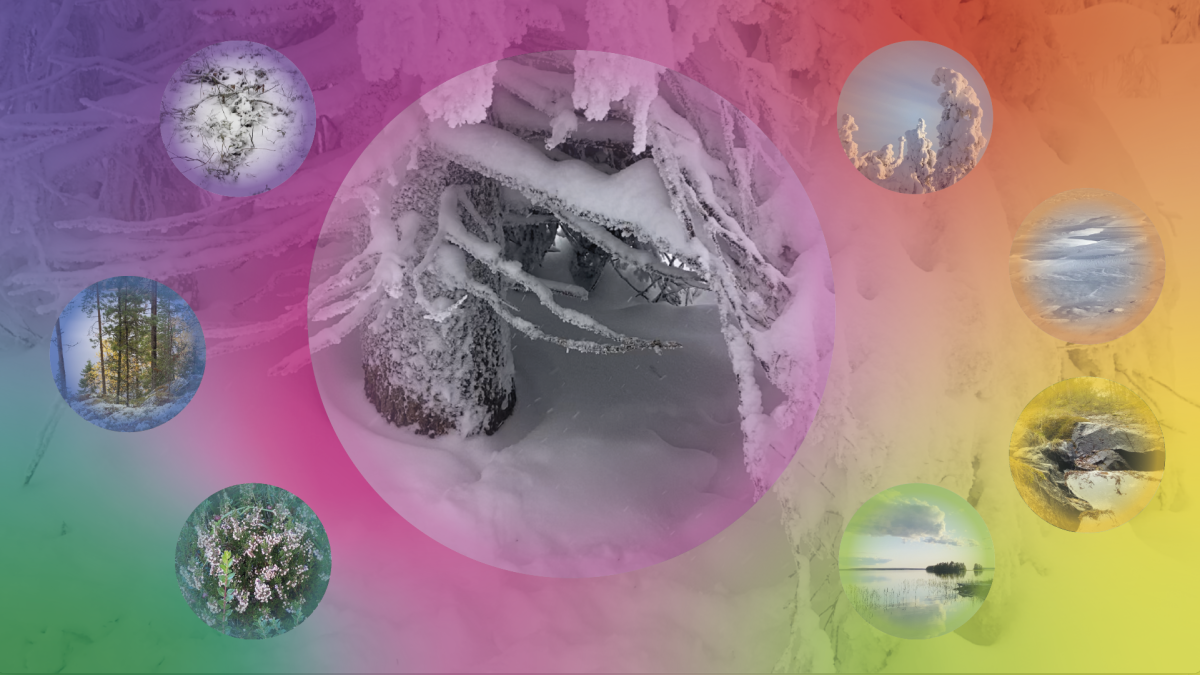 Kierto – Circulation -mediataideteos hyödyntää Lapin kahdeksan vuodenajan ja väriympyrän yhdistelmänä luotua visuaalisuutta. Elämän kiertokulku, joka alkaa talvesta ja loppuu talveen.