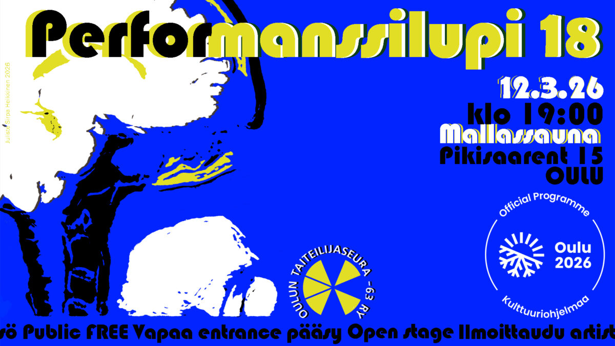 Performanssilupi on osa Oulu2026-kulttuuriohjelmaa ja kulttuuri-ilmastonmuutosta. Oulun Taiteilijaseura -63 ry:n jäsentaiteilijoiden luotsaama tapahtuma tulee pikapuolin viiden vuoden ikään – siitä lähemmin lumiajan mentyä. Nyt Open Stage -periaatteella toimivan lupin artistit kutsuvat jälleen mukaan ihan kaikkia. Tule kannustamaan, kokemaan, jakamaan ja virkistymään Pikisaaren Mallassaunan ennakkoluulottomaan ilmapiiriin. Lukuisa joukko kansalaisia on uskaltautunut estradille kuluneiden vuosien aikana. Tule sinäkin.