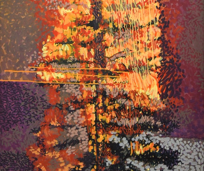 Fire as a visual metaphor is complex. As a basic element, it is aesthetically captivating and enchanting; historically it is associated with power, functionality and human progress. On a deeper level, fire affects the psyche, arousing feelings of delight and also fear or foreboding. I have incorporated plant forms into a visual dialogue with fire to heighten the sense of dread and menace. The Blaze exhibition is a mediation on the cognitive dissonance created by the pairing of aesthetic beauty with the intellectual and emotional responses provoked by images of wild fire as a symbol for the destruction of ecology and community.
